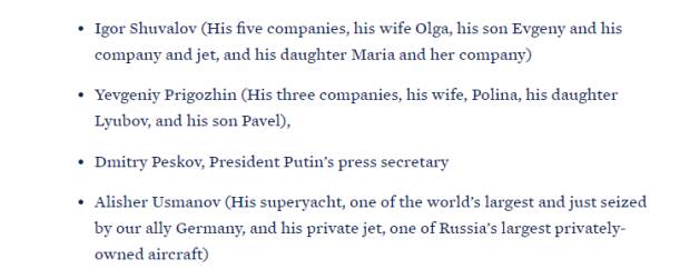 Na listi se nalaze milijarder Ališer Usmanov i Dmitrij Peskov, portparol ruskog predsjednika Vladimira Putina, saopštila je Bijela kuća, a prenosi RTS.