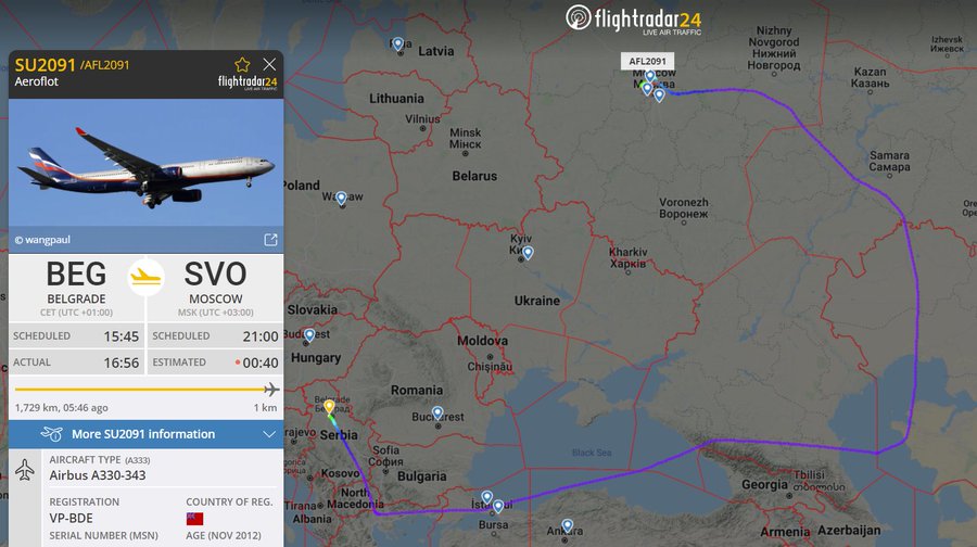 Avion iz Beograda do Moskve letio skoro 6 sati: Evo kuda se kretao