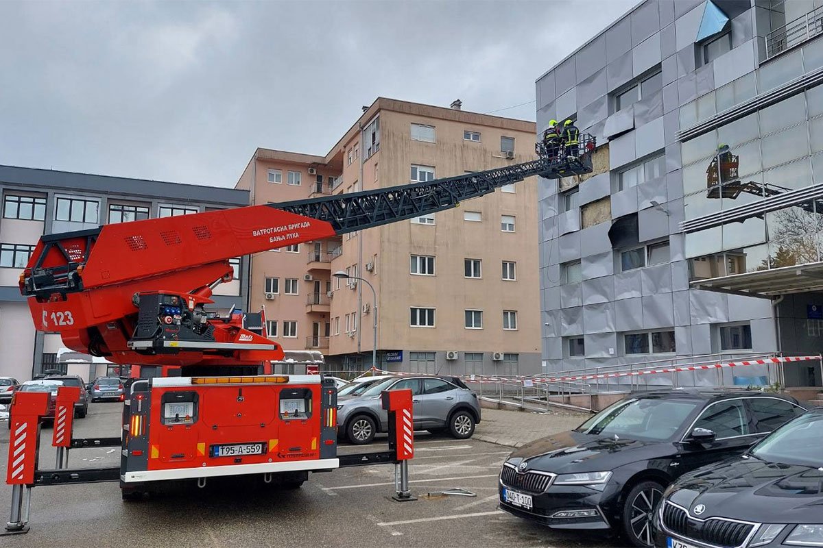 Banjalučki vatrogasci gasili požar i skidali lim sa Tužilaštva