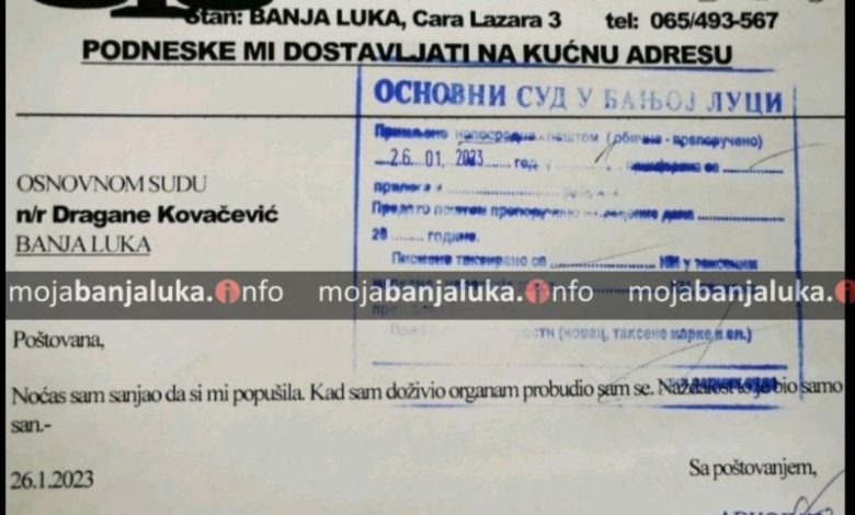 – Cijenimo da je podnesak neprimjerenog sadržaja, te da isti govori više o samom podnosiocu istog, nego o sudu i sudijama ovog suda. Kako isti ima elemente kažnjivosti isti će biti proslijeđen nadležnim organima na dalje postupanje – odgovorili su za portal mojabanjaluka.info.