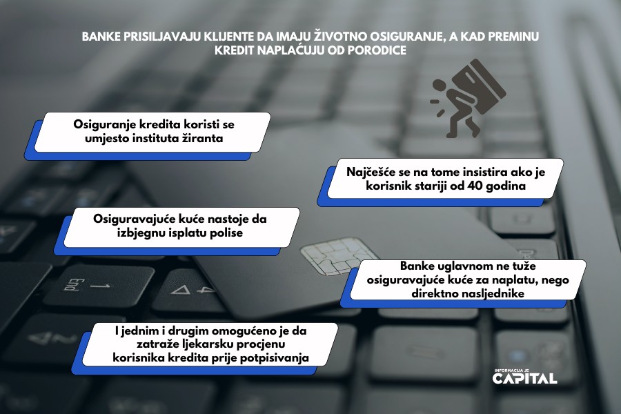 Pojedine osiguravajuće kuće i banke ustanovile su praksu plasiranja životnog osiguranja kredita za slučaj smrti korisnika, ali bez stvarne namjere da svoje obaveze ispune kada se to zaista i dogodi, tvrde sagovornici portala CAPITAL.