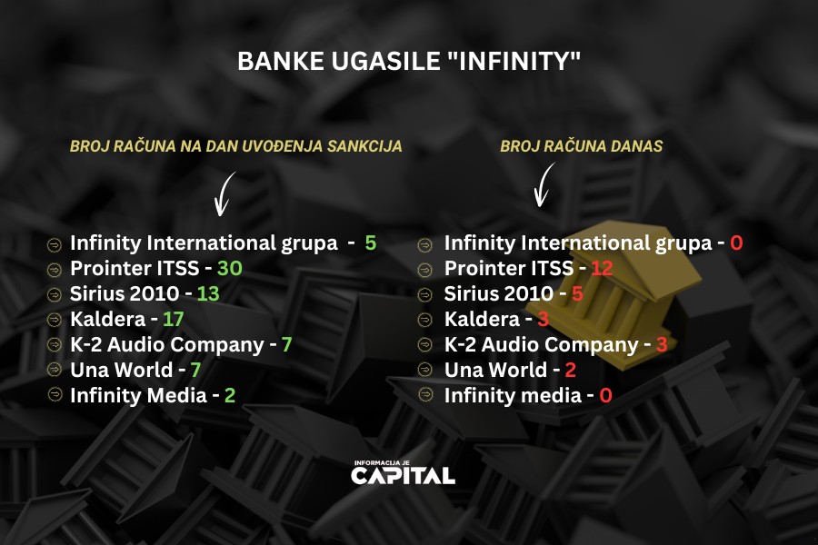 “Infinity International grupi” ugašeni su svi računi u bankama, kao posljedica stavljanja na “crnu listu” Kancelarije za kontrolu imovine stranaca (OFAC) Američkog ministarstva finansija, piše CAPITAL.ba.
