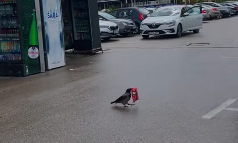 Vrana je ukrala paketić, a sudeći po komentarima, niko joj lopovluk previše ne zamjera., prenosi Večernji.