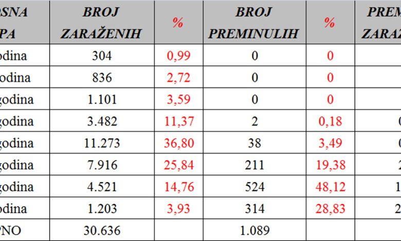 Tokom prošlog mjeseca, u prosjeku smo dnevno imali 20 preminulih, a samo tri dana prošla su s jednocifrenim brojem onih koji su izgubili bitku s kovidom. Sa najviše umrlih suočili smo se 11. novembra – čak 37.