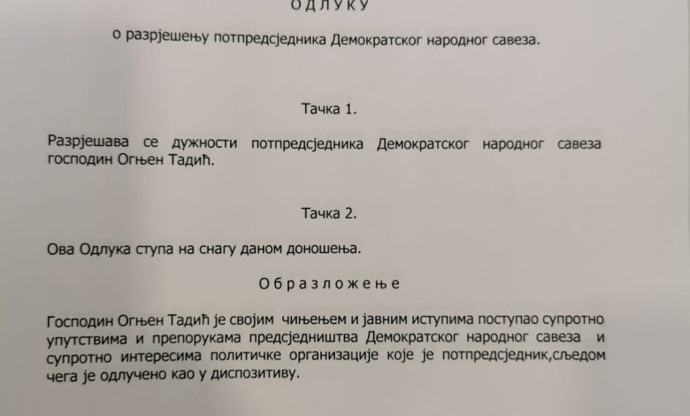 DNS razriješio dužnosti Tadića, Popovića i Jovičića