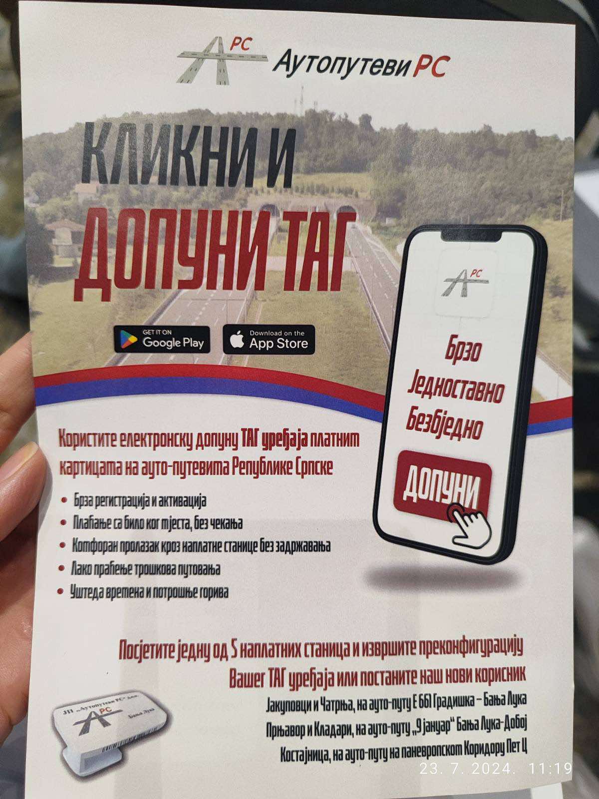 Ova aplikacija koju je lansiralo preduzeće "Autoputevi RS" građanima je omogućila komfornu elektronsku dopunu TAG uredjaja platnim karticama, bez odlaska na prodajno mjesto.