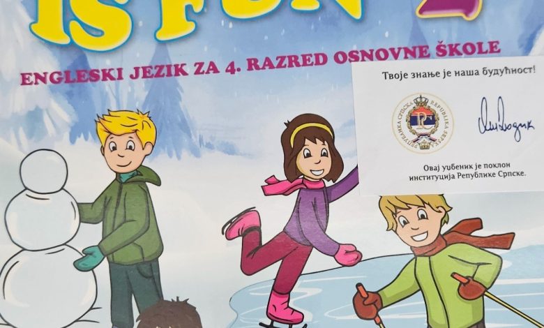 Bivši predsjednik Republike Srpske Milorad Dodik konačno je ispunio jedno obećanje: na udžbenicima za osnovnu školu našle su se naljepnice sa njegovim potpisom i uz poruku da su udžbenici poklon institucija Republike Srpske.