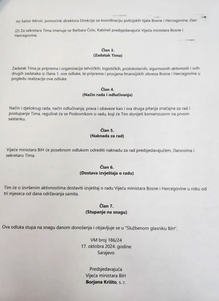 Za sekretara Tima imenovana je Barbara Čolo iz kabineta predsjedavajuće Savjeta ministara BiH.