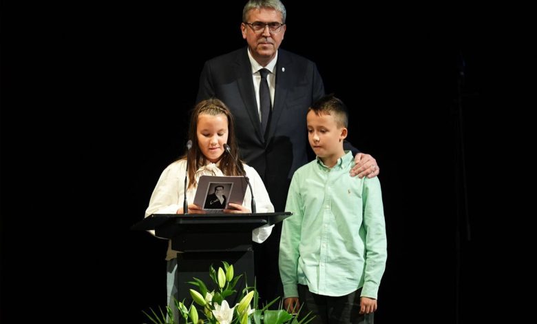 Na otvaranju komemoracije u čast velikana narodne muzike Halida Bešlića u Narodnom pozorištu u Sarajevu na binu su izašli Halidova unuka Lamia i njen brat.