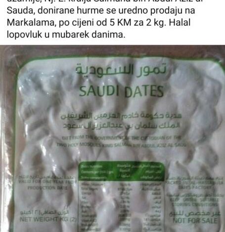 “Sjećate li se onih naših hurmi za imunizaciju? Evo ih! Našao ih moj drug Sanid! Iako piše NOT FOR SALE i da su hurme dar Vlade i čuvara dvije svete džamije, Nj. E. kralja Salmana bin Abdul Aziz al Sauda, donirane hurme se uredno prodaju na Markalama, po cijeni od 5 KM za 2 kg. Halal lopovluk u mubarek danima.” – napisao je izvjesni Ibrahim Balić.