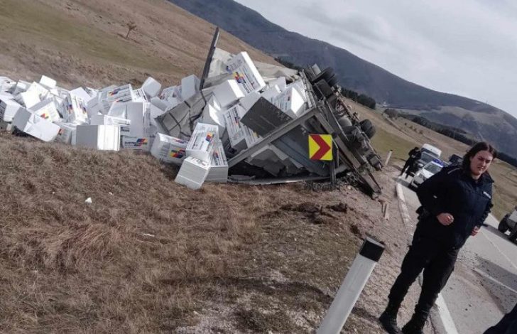 Usljed jakih udara vjetra, na Kupresu se danas prevrnuo kamion, koji je prevozio stiropor.