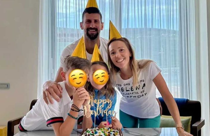Na slici se vidi Jelena u društvu supruga Novaka Đokovića i njihove djece, dok svi nose vesele rođendanske kapice u žutoj boji i zajedno duvaju svjećice na torti sa natpisom “Srećan rođendan”.