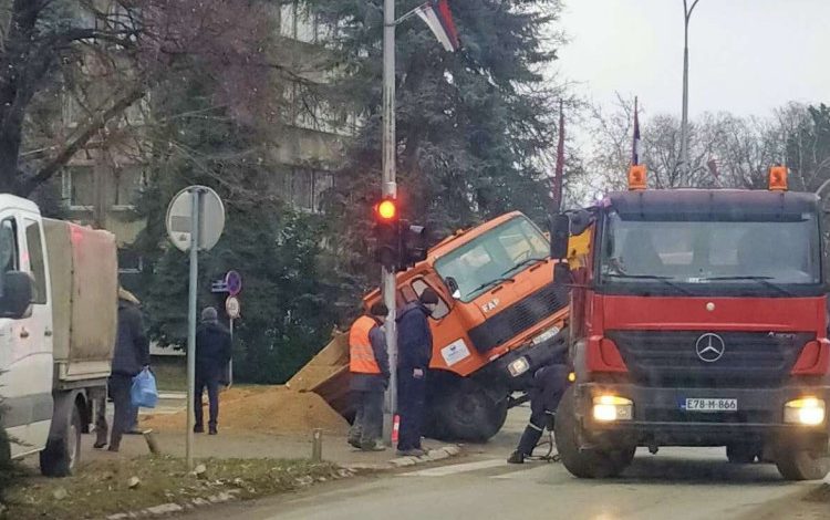 Kamion je, dok su se radovi izvodili, završio u rupi koja se pojavila na tom mjestu.