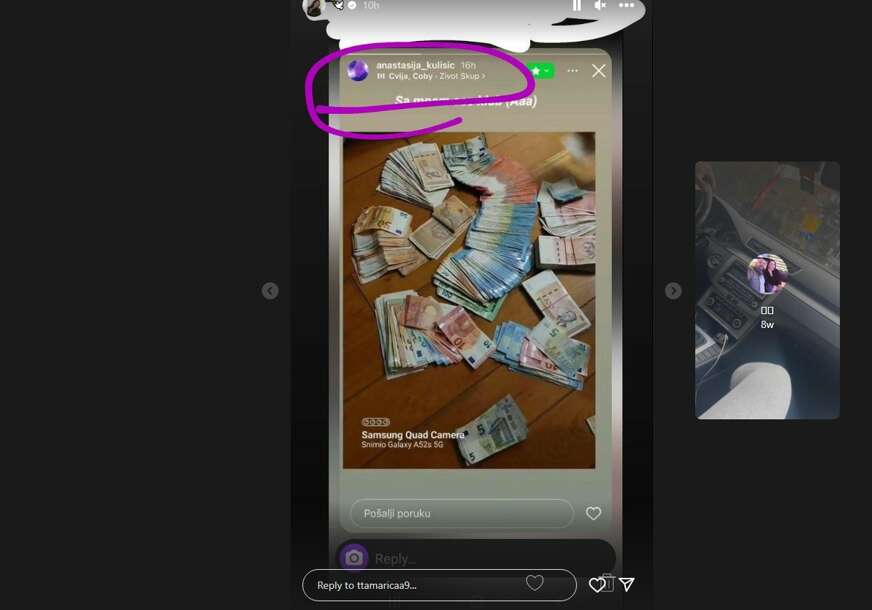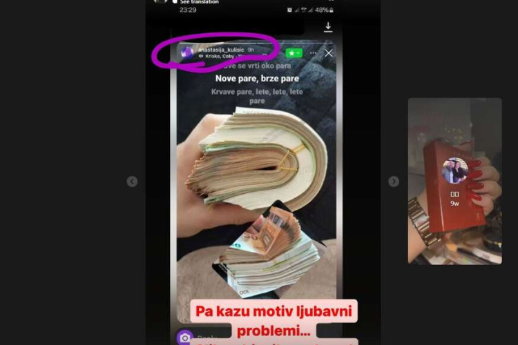 Na fotografijama se vidi velika količina novca i poruke koje je navodno napisala osumnjičena (14) za teško ubistvo – Nove pare, brze pare. Krvave pare, lete, lete, lete pare. –