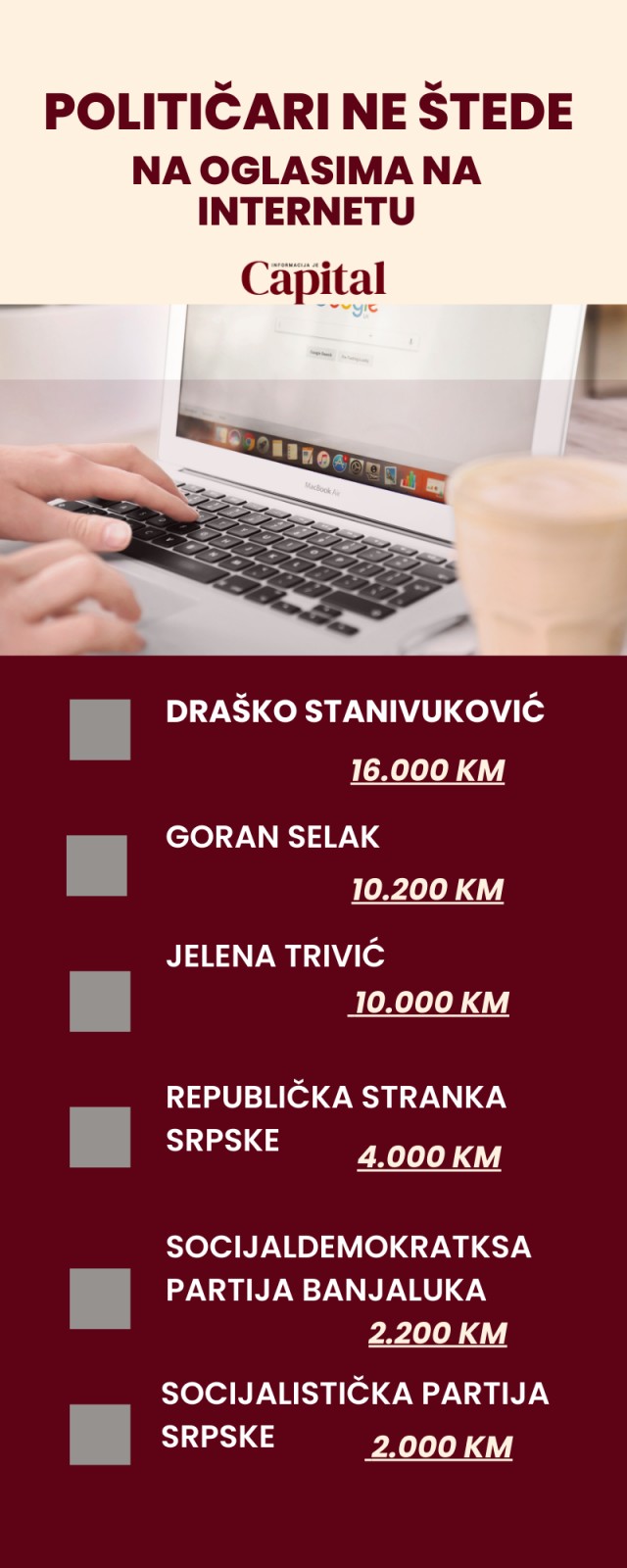 Koliko su političari potrošili novca na internetu u kampanji