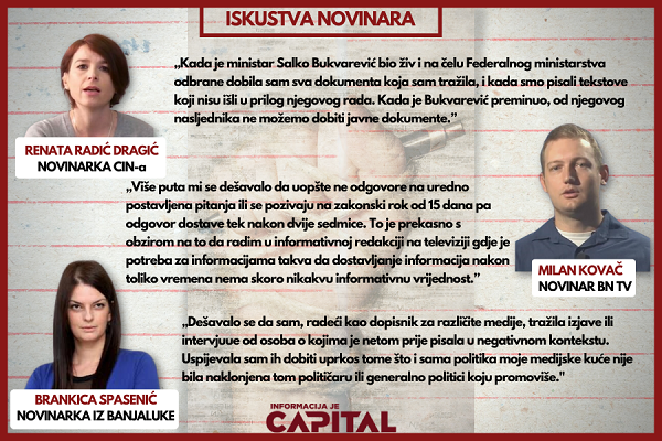 Novinarka Centra za istraživačko novinarstvo (CIN) iz Sarajeva Renata Radić Dragić kaže da su joj odbijenice za pristup informacijama od javnog značaja često imale obrazloženje da se traže podaci koji se mogu smatrati povjerljivim.