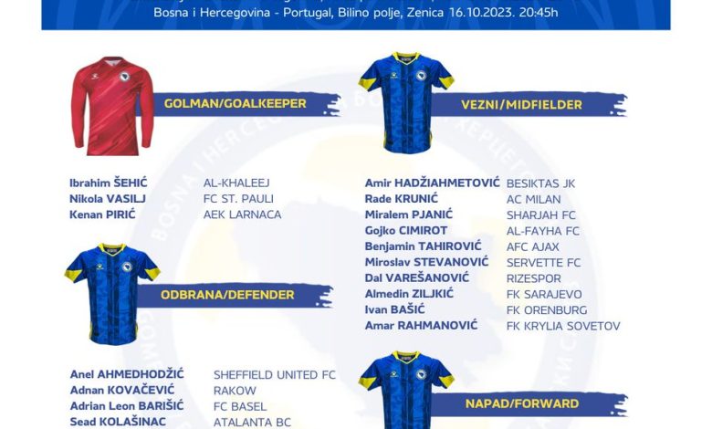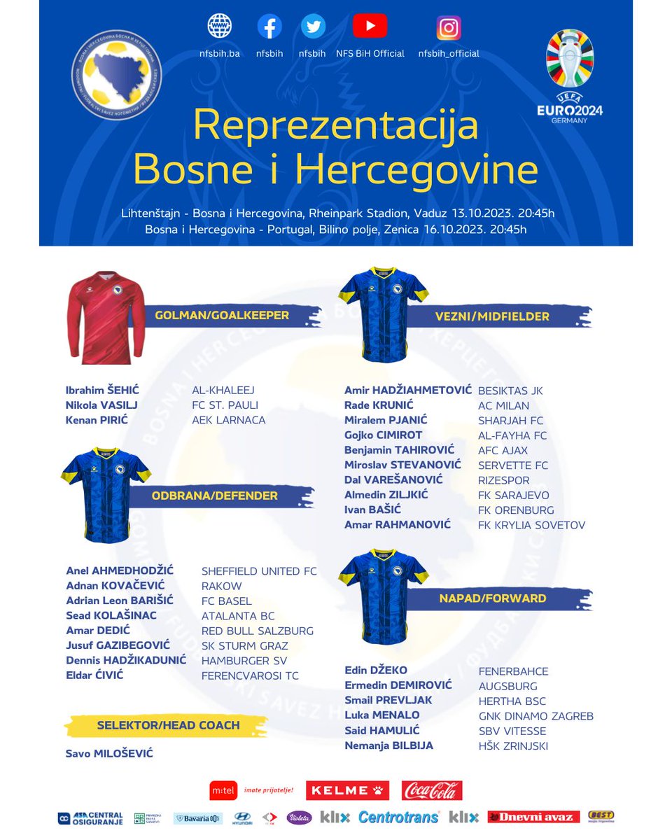 Napad: Edin Džeko, Ermedin Demirović, Smail Prevljak, Luka Menalo, Said Hamulić, Nemanja Bilbija.