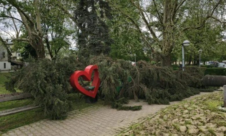 Jak vjetar u Kozarskoj Dubici iščupao je nekoliko stabala, jedno drvo palo je u parku u centru grada, a jedno kod Autobuske stanice.