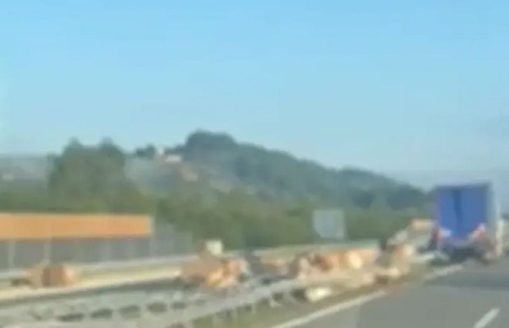 Nezgoda na auto-putu “9. januar”: Prosuo se teret iz kamiona (VIDEO)