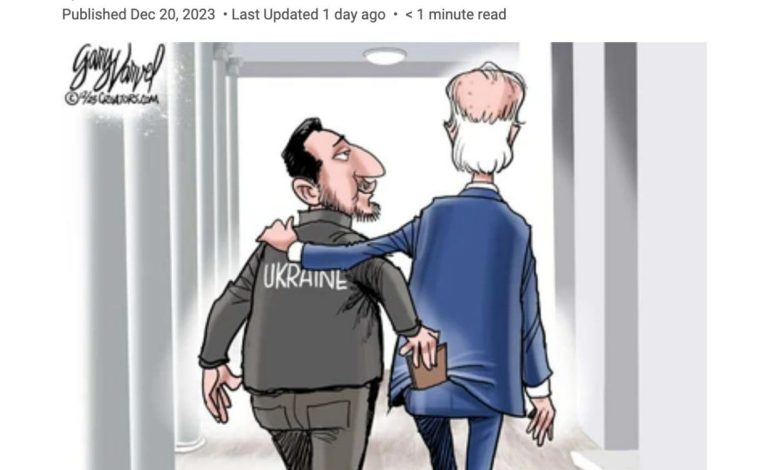 Objavili karikaturu na kojoj Zelenski džepari Bajdena pa se izvinjavaju (FOTO)