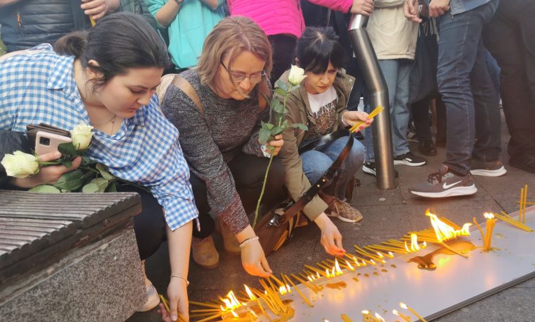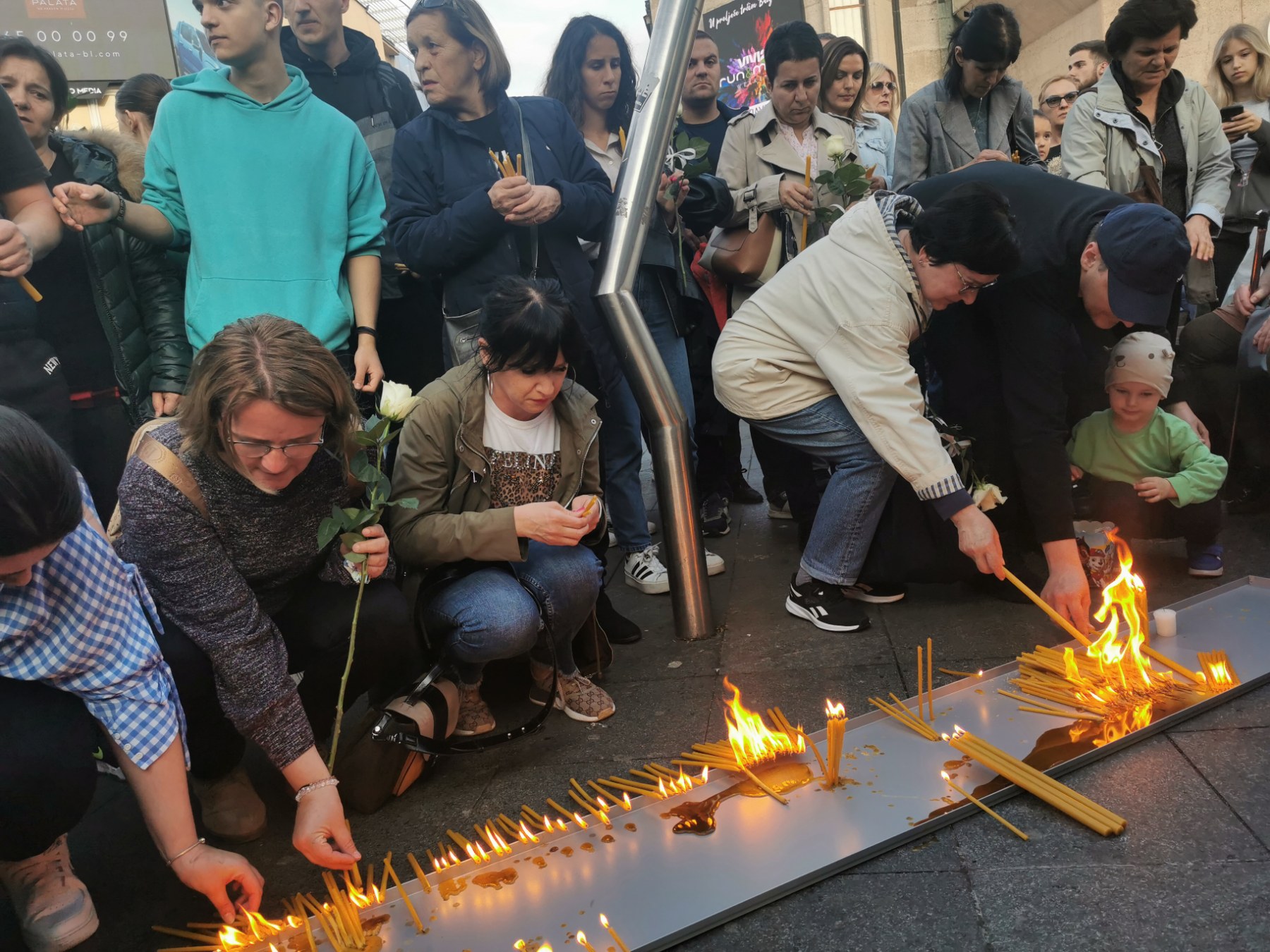 I Banjolučani su izašli na Trg Krajine gdje pale svijeće i ostavljaju cvijeće pored "Krivog sata".