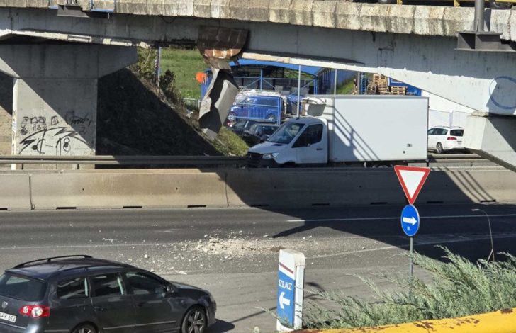 Sa nadvožnjaka na brzoj cesti Banjaluka – Laktaši u mjestu Trn otpadaju komadi betona na automobile koji prolaze ispod njega.