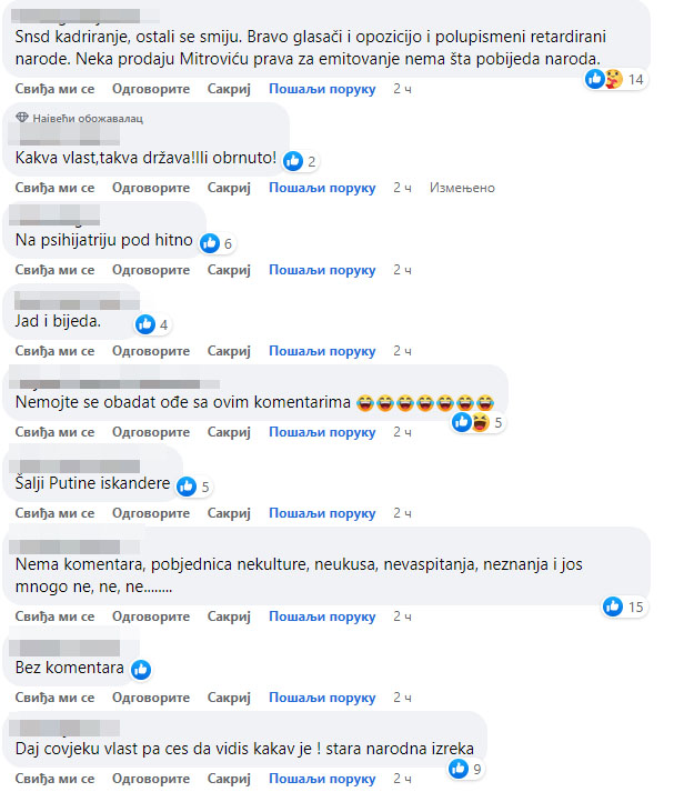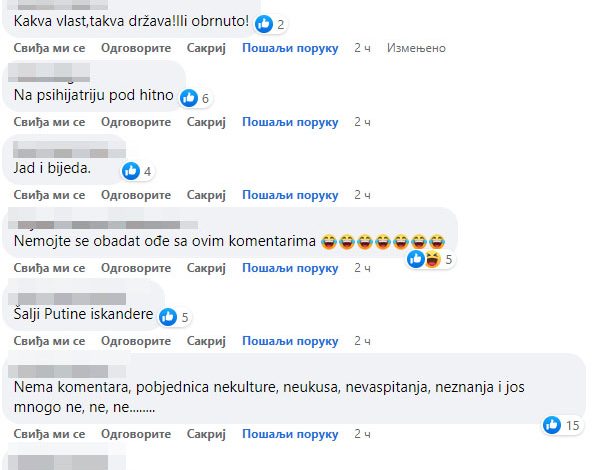 "Dobro je nama ko nas predstavlja. Pametan čovjek nema šta dodati, to je dno dna; Daj čovjeku vlast pa ćeš da vidiš kakav je, stara narodna izreka; Žena je ili pijana ili drogirana; Strašno kakav riječnik ima; Gdje ih sabraše ovako pismene”, samo su neki od komentara građana.