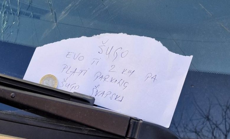 – Šugo evo ti dvije KM pa plati parking. Šugo švapska – i kovanica od dvije marke.