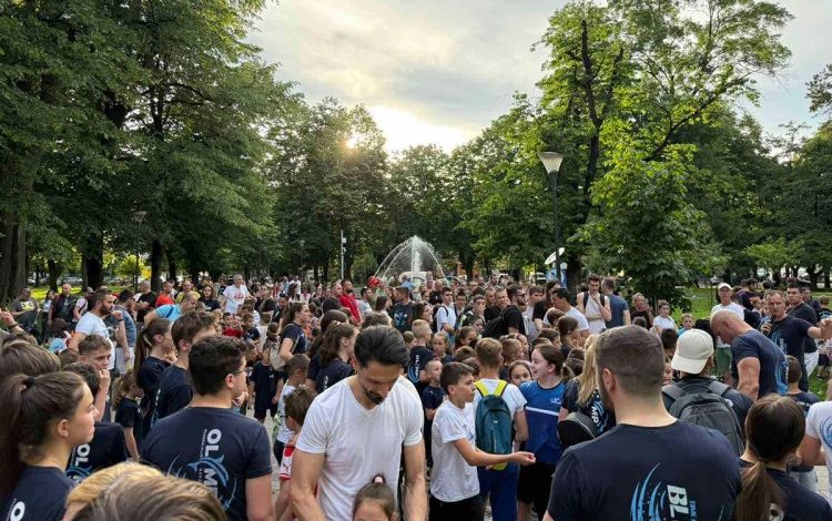 Više stotina zaljubljenika u vodene sportove iz plivačkih klubova “22. april”, “Olymp” i “Kruna”, kao i vaterpolo klubova “Banjaluka” i “Borac”, ispunilo je park, a okupili su se, simbolično, kod fontane.