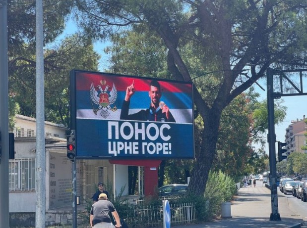 Bilbord se pojavio kod mosta na Ribnici u centru Podgorice, blizu Karađorđevog parka, a na njemu je lik Đokovića dok drži olimpijsko zlato, iza njega je srpska trobojka a ispod je na ćirilici ispisano “ponos Crne Gore”.