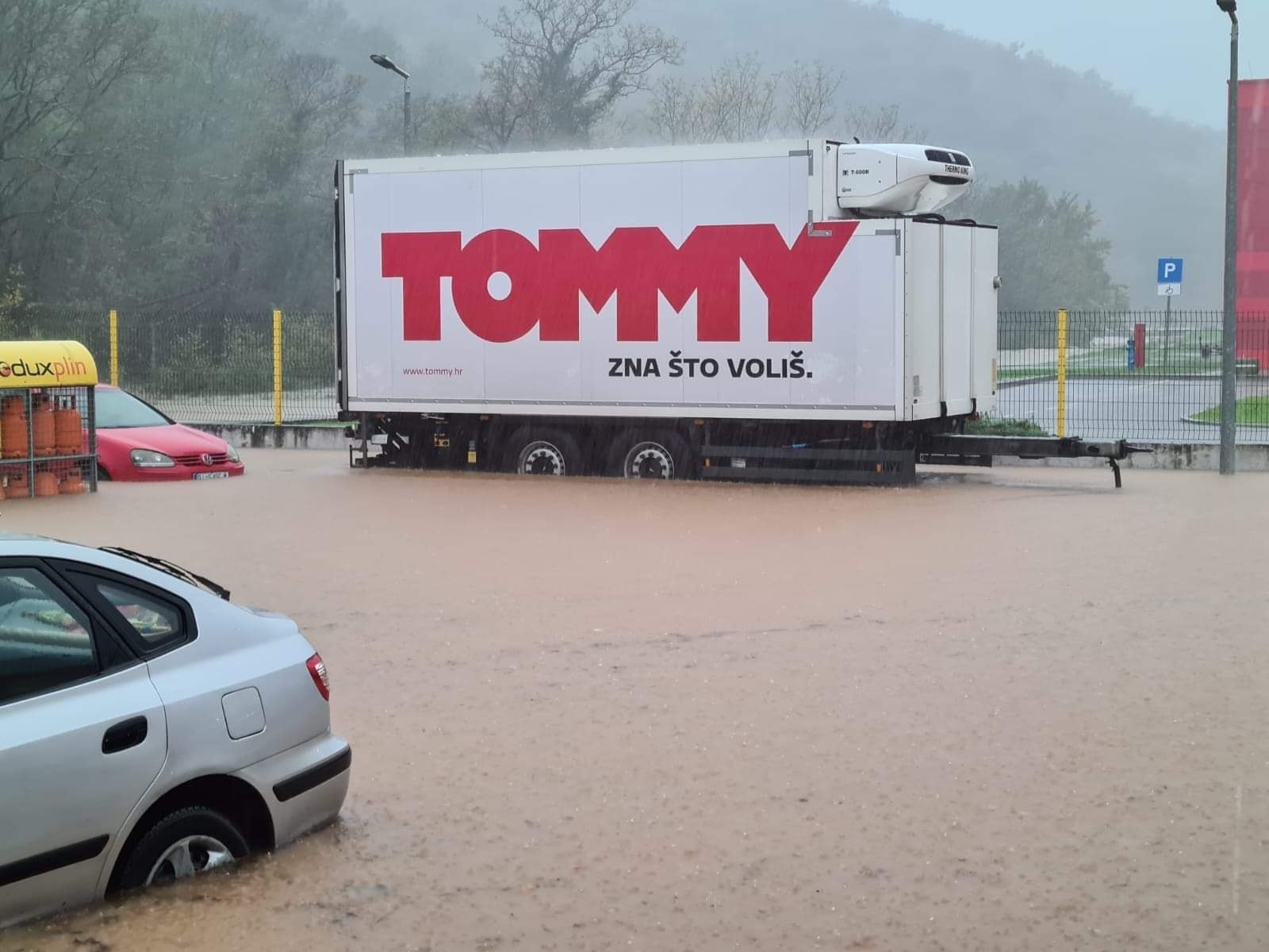 Kako se vidi na snimcima koje su objavili tamošnji mediji, prava bujica nosi sve pred sobom, a voda ulazi u kuće, pa će štete sigurno biti, javlja riječki Novi list.