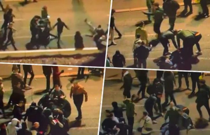 Na snimku se vidi da nastavljaju da ga udaraju i šutiraju dok leži na betonu. Grupa prilazi da ih udalji, a potom se vidi kako mladić nepomično leži.
