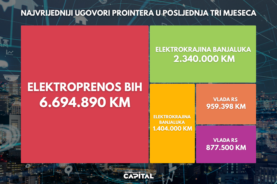 Banjolučka kompanija „Prointer“ u protekla tri mjeseca dobila je od institucija i javnih preduzeća ugovore vrijedne čak 18,5 miliona maraka pobjeđujući na tenderima samostalno ili kao član grupe ponuđača, pokazala je analiza portala CAPITAL.