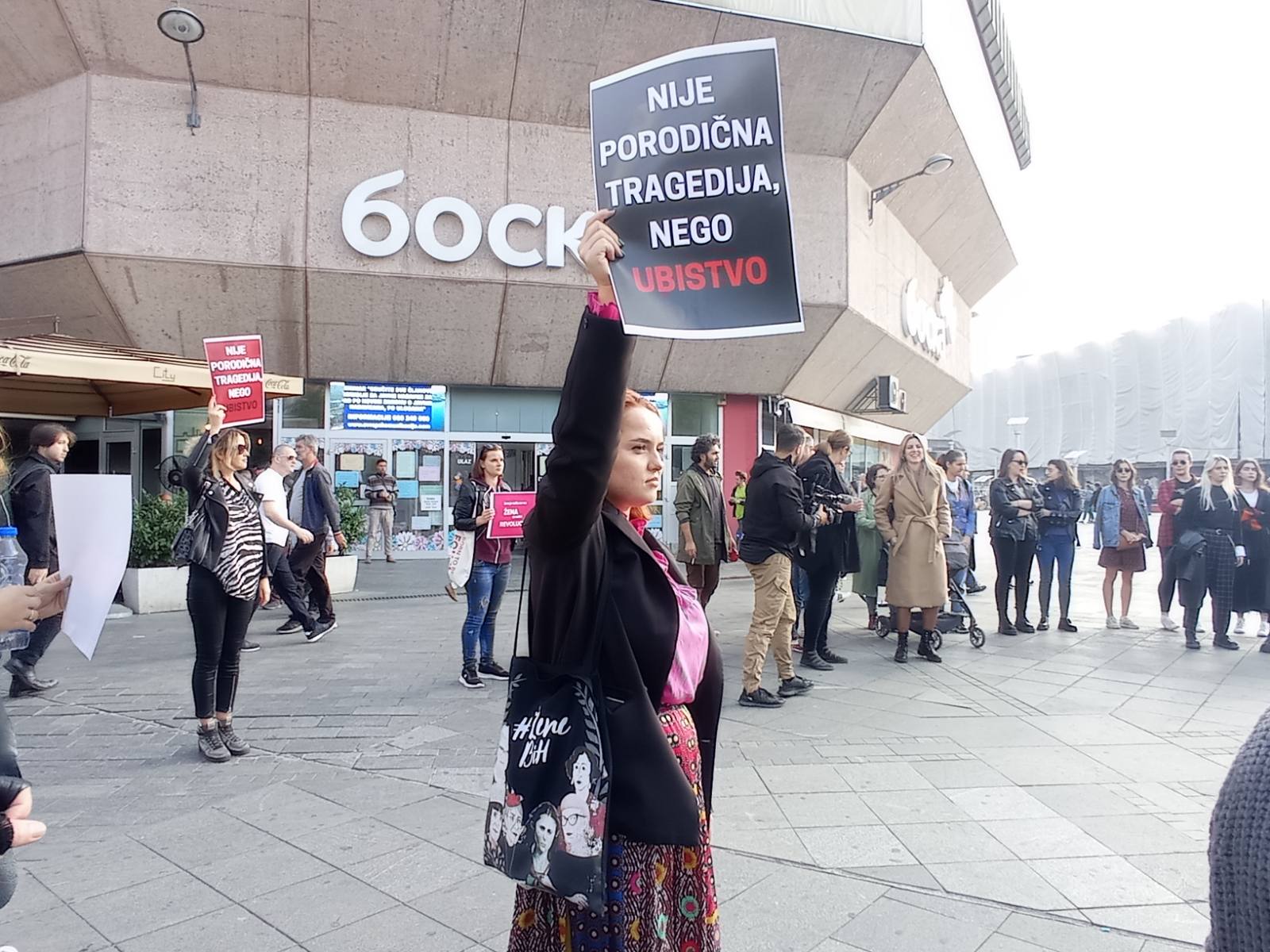 Održan je i minut ćutanja za sve ubijene žene. Gorica Ivić iz Fondacije Udružene žene Banja Luka rekla je da je protest reakcija opšte populacije na brutalno ubistvo u Bihaću.