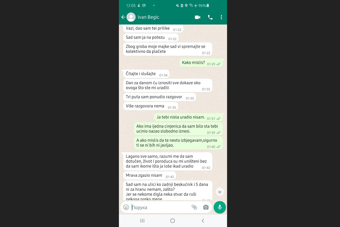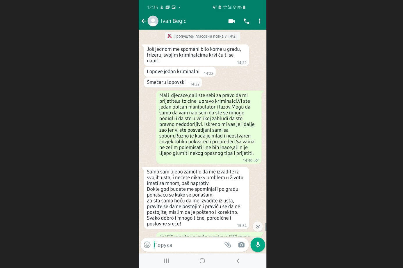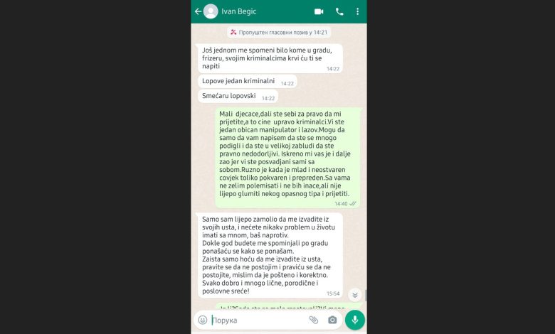 Radović je naveo da mu je Begić prvi poslao prijeteće poruke, te da je  “objavio je niz laži” o njemu.
