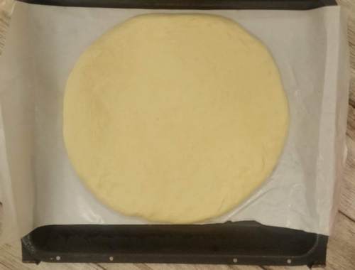 Poslije sat vremena testo blago premijesiti, oblikovati krug i stisnuti ga rukama, da se napravi tanka okrugla pogača.