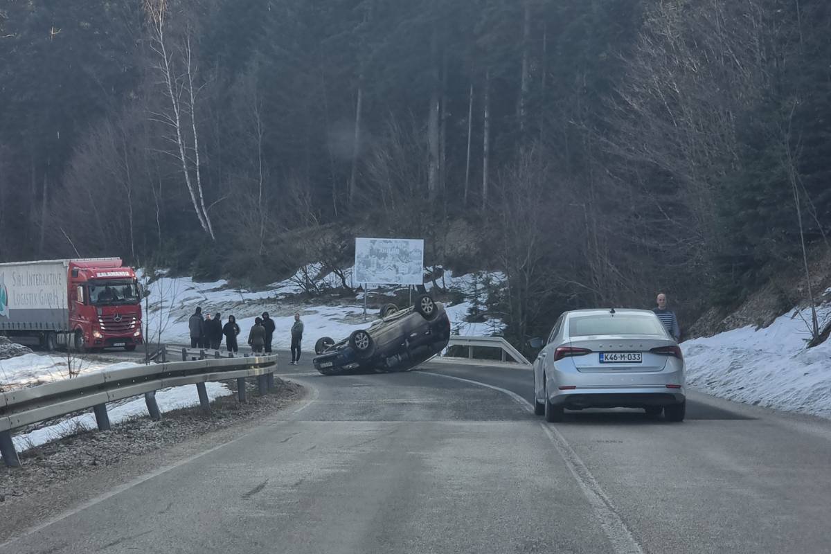 Udes na Borju, automobil završio na krovu