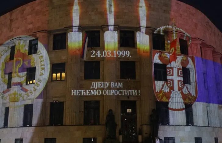 Povodom obilježavanja Dana sjećanja na stradale u NATO agresiji Palata Republike večeras je osvijetljena bojama zastava Republike Srpske i Srbije.