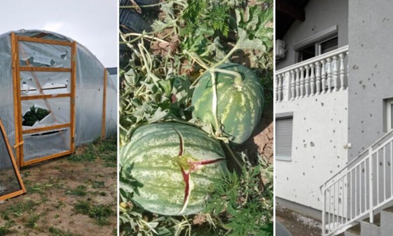 Grad je u potpunosti uništio njegove zasade lubenice na 1,5 hektara, soju na dva hektara i četiri duluma bundeve. Kako kaže, šteta je totalna, a oporavak neizvjestan.
