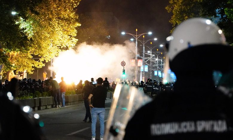 Kako je navedeno, poslije neprijavljenog javnog okupljanja u Kampusu novosadskog  Univerziteta, učesnici su, u Stražilovskoj, gađali topovskim udarima i bakljama prostorije SNS.