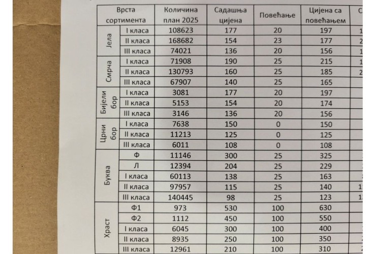 U nastavku donosimo prijedlog novih cijena šumskih sortimenata, o kojem bi, kako saznajemo, Vlada RS trebalo danas da raspravlja, a cijene možete pogledati u galeriji.