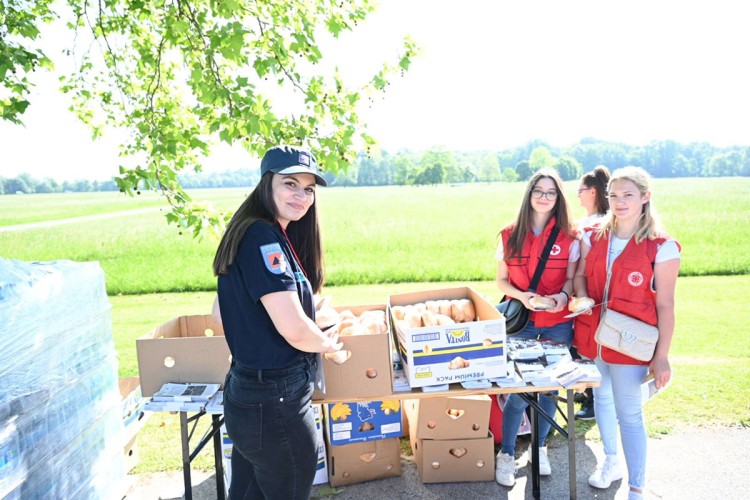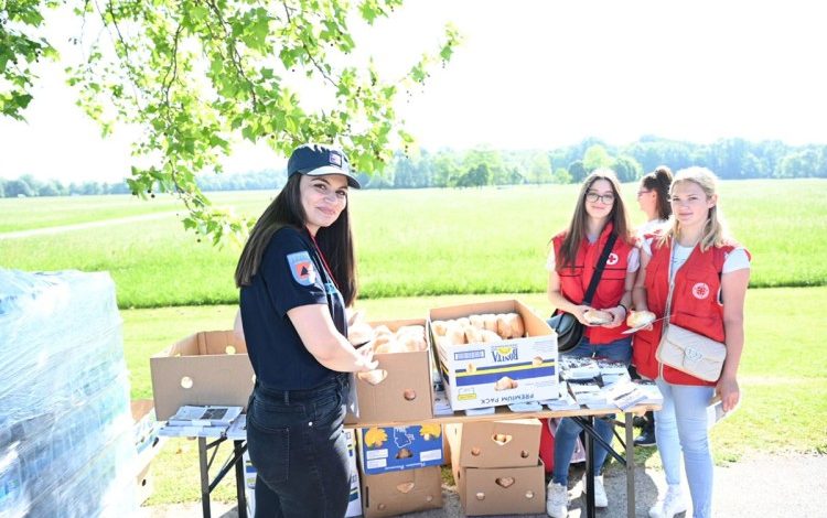 Ove godine pripadnici Crvenog krsta i civilne zaštite okupljenima dijele vodu i sendviče, ali i voće.