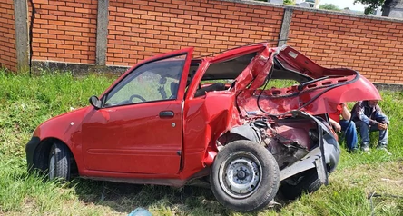 Na mjestu udesa je jeziv prizor, automobil je prepolovljen od jačine udarca, a dijelovi su razbacani po putu.