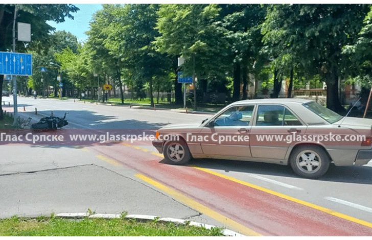 Motocikl i automobil sudarili su se u ulici Kralja Petra prvog Karađorđevića u blizini zgrade Vlade Srpske.