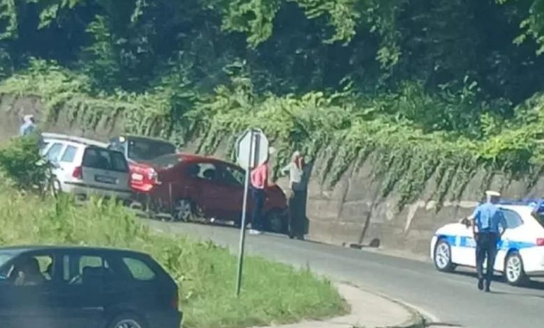 Na fotografijama je se vidi da je  jedan automobil udario u potporni zid.