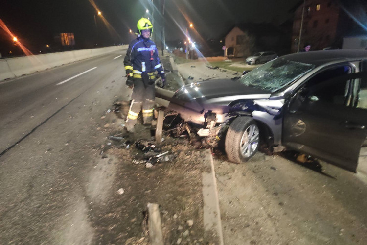 Vozilo je probilo bankinu pored puta, a na automobilu je oštećena šoferšajbna te prednji dio.