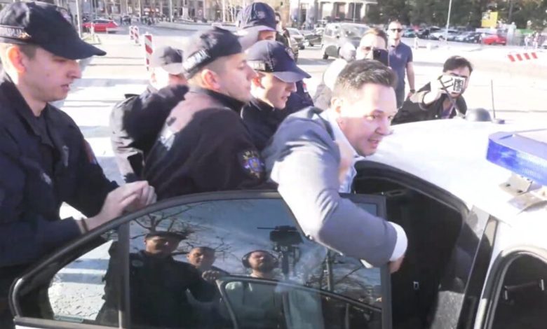 Policija je uhapsila Nemanju Šarovića, voditelja KTV, koji je danas za tu televiziju izvještavao iz kampa studenata koji se nalaze u Pionirskom parku.