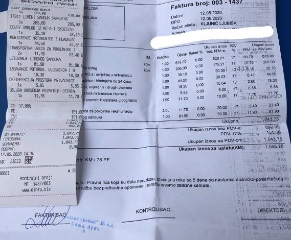 „Igrom slučaja i ja se bavim tim poslom i u opremu te vrste se razumijem. Da je neki laik bio, mislio bi da to tako treba, ali ja vidim da je to pogrešno. Ako izuzmemo oko 200 KM, koliko koštaju njihove usluge, vidim da je takav bukov sanduk mnogo skuplji nego u radnjama u kojima se prodaje, i u kojoj ja radim“, rekao je on, naglašavajući da je cijena najmanji problem s obzirom na traume koje je porodica doživjela u ovom slučaju.