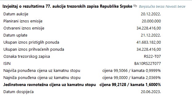 Na 77. aukciji vladalo je veliko interesovanje investitora koji su ponudili 41,6 miliona maraka.