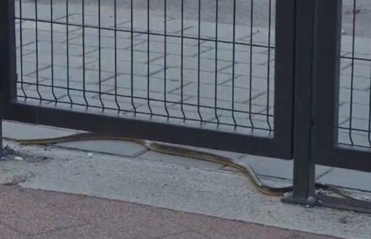 Zabrinjavajuća scena mogla se vidjeti danas popodne ispred područne škole "Vuk Stefanović Karadžić" u banjalučkom naselju Ada, gdje je kod ograde snimljena velika zmija.